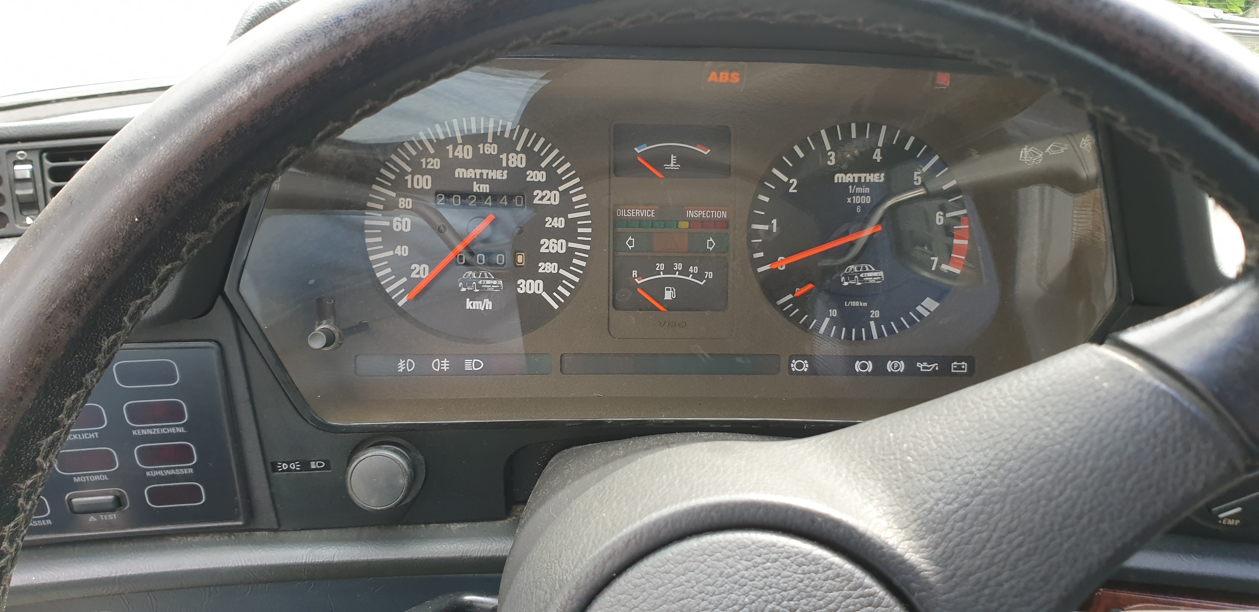 Etwas Kopfschmerz verursachte die Tachoeinheit, da sowohl der DZM nur mal so ab und zu funktionieren und der Kilometerzähler seinem Job nicht nachkommen wollte. Das DZM - Problem entpuppte sich aber netterweise als schlechte Lötstelle der Plusversorgung des Instruments und der KM-Zähler ließ sich durch den Ersatz eines fehlenden Zahnrades wiederbeleben (passte vom E30 Tacho, von denen ich noch reichlich zum Fleddern im Lager hatte).