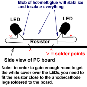 of the LEDs and resistor.