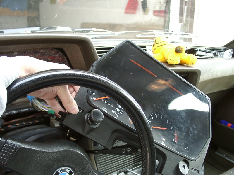 weiser Stecker links der Instrumententafel abziehen; auch die Beleuchtung