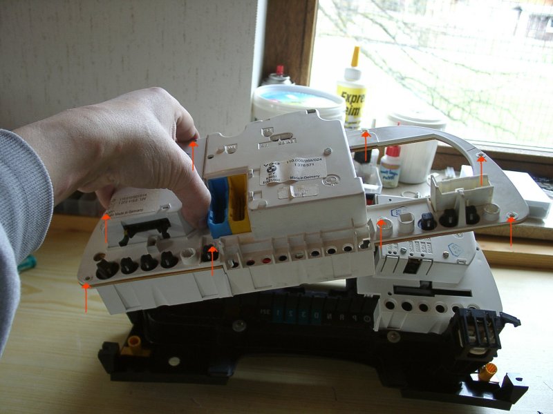 wenn alle Schrauben raus sind, kann man den weissen Block nach hinten