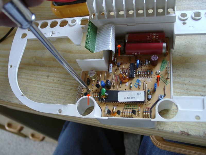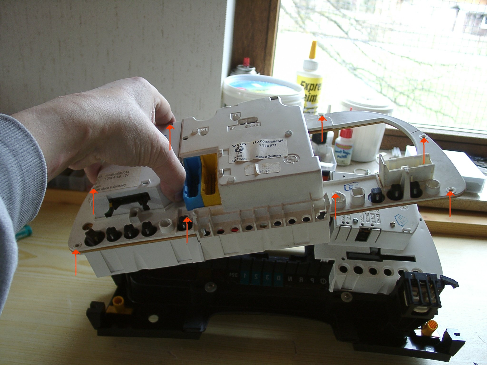 Platine abstecken, vorsichtig, die weissen Flachbandkabel sind empfindlich